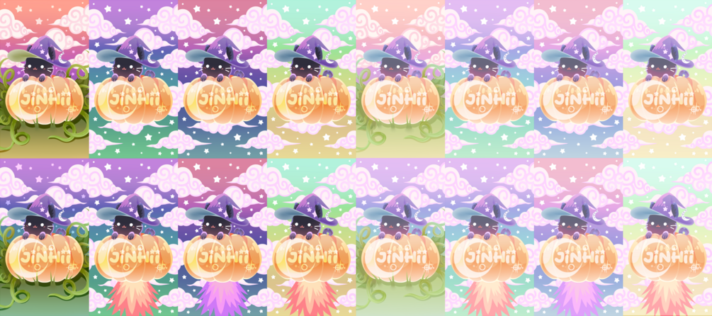 A full-size unwatermarked set of different versions of wallpapers featuring a cute witch cat inside a pumpkin! Decorate your phone's lockscreen/wallpaper~
